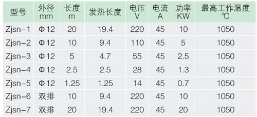 Zjsn型繩形加熱器型號(hào)、規(guī)格、額定參數(shù)